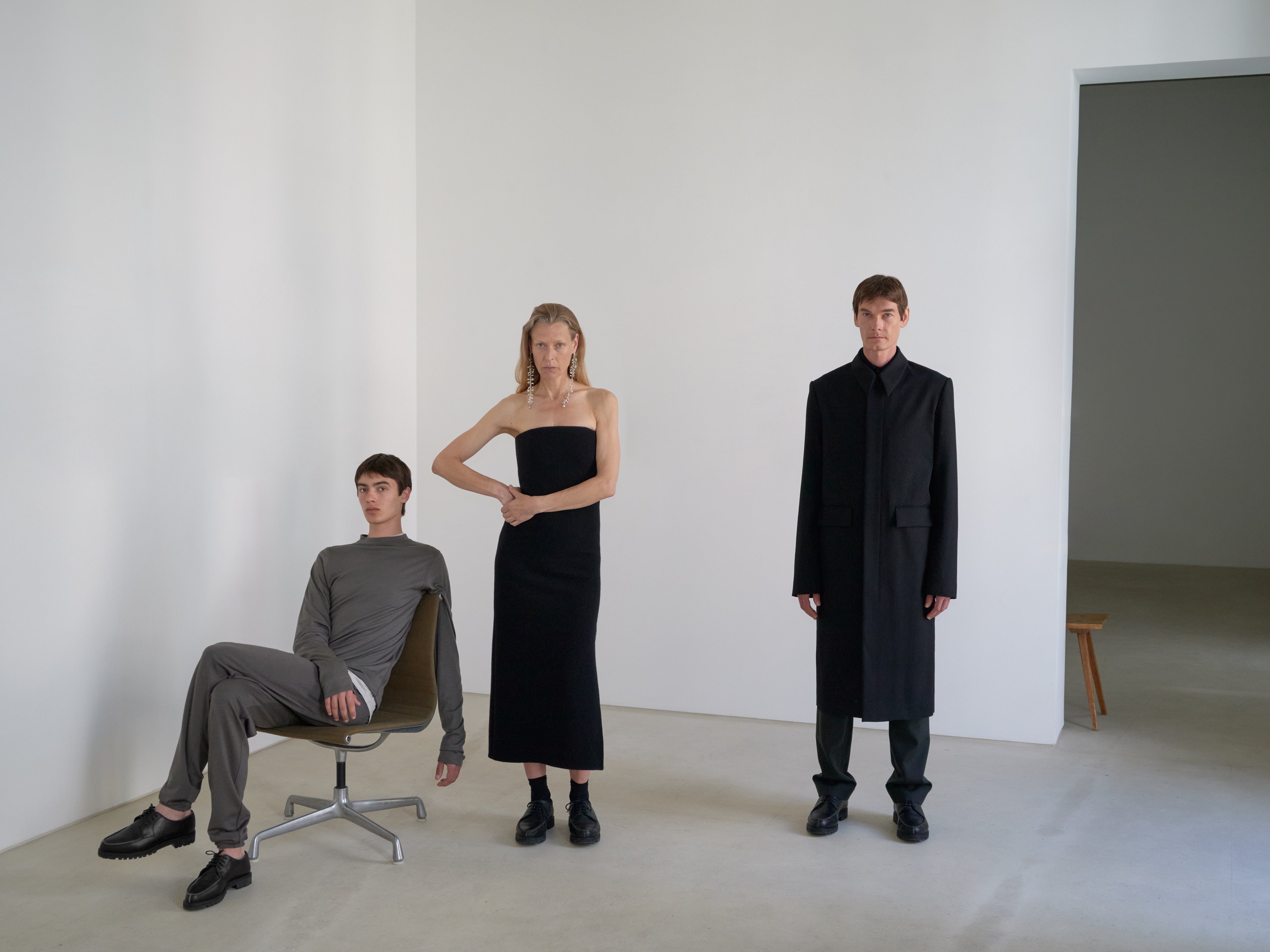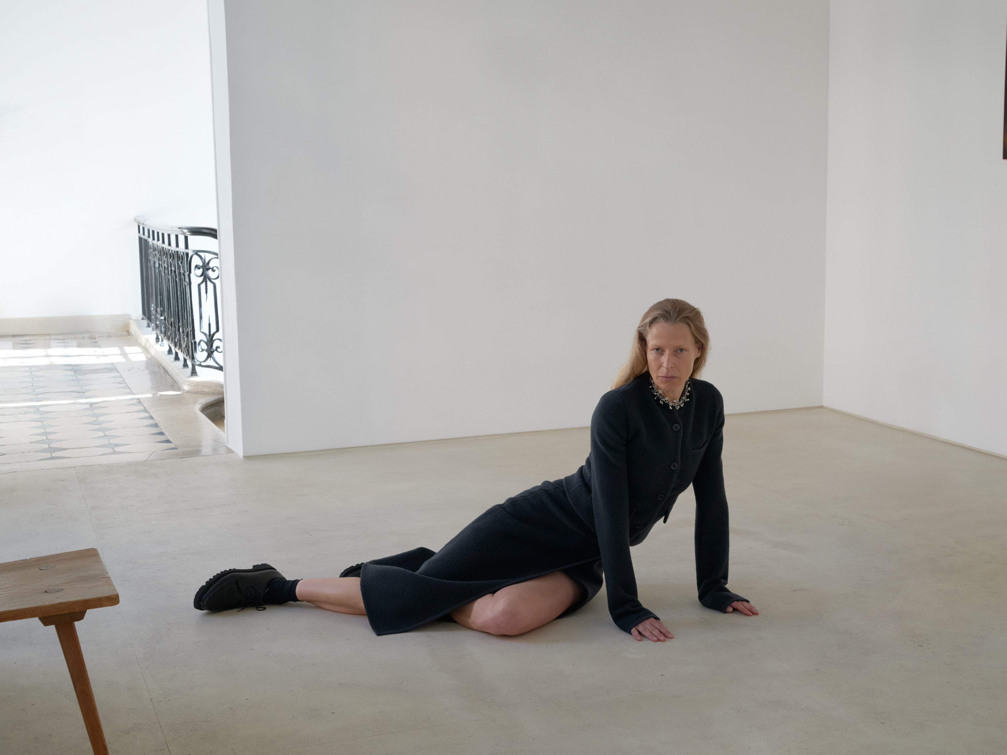 Lingering, motionless in the chalky rooms of a barren home, figures appear, statuary. Suspended in time and space, they are clad in soft wool, alongside stark, sculptural wooden furniture: echoes of distant South Tyrol.